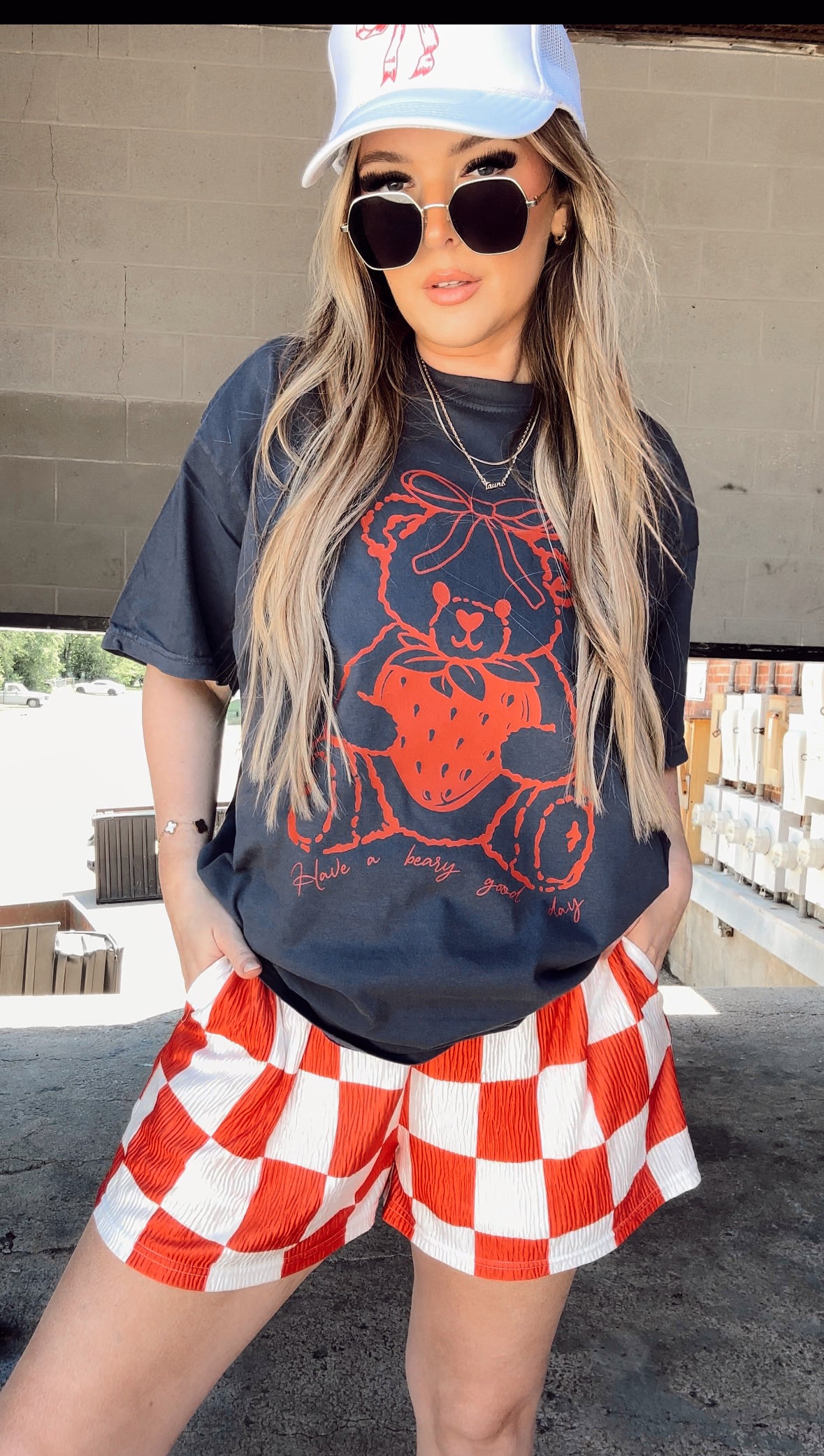 These checkmate shorts are your NEWEST obsession! This trendy checkered print style is truly giving iconic. You can style them with your favorite graphic t-shirt, baby tee, or whatever tinkles your fancy because they are THAT good. These shorts have a flowy relaxed fit with an elastic waistband and pockets. They are double lined, so they are not see through!
