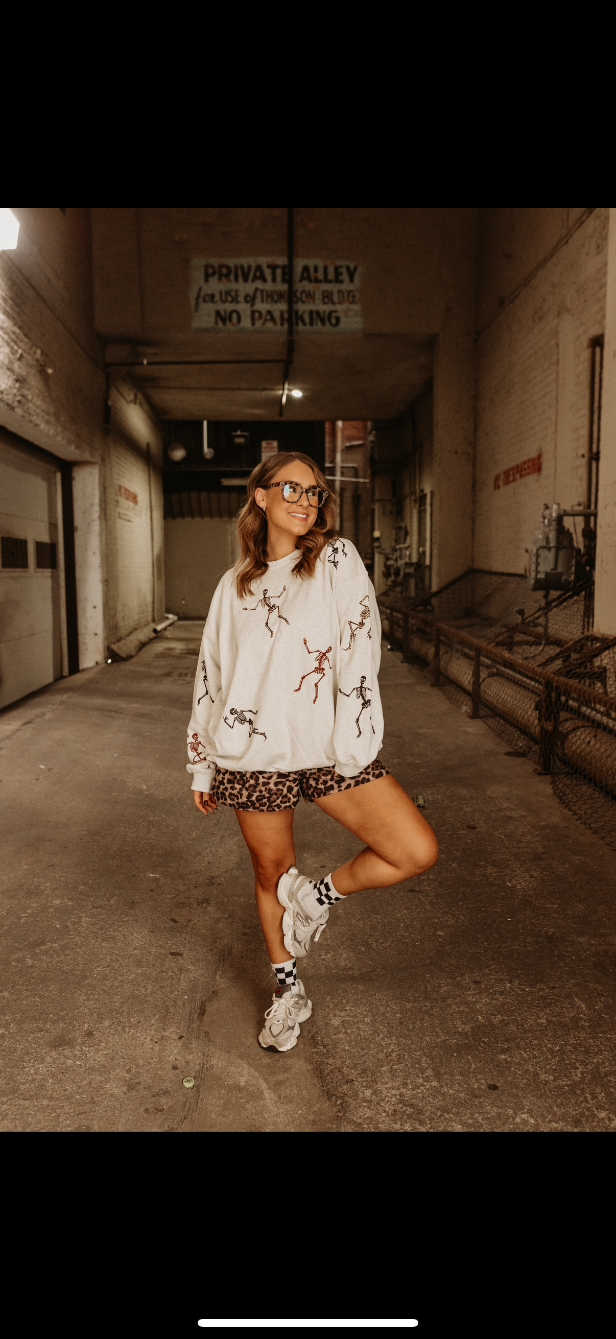 each crew is made in house, Skelly placement may vary but each sweatshirt has around 12 skellys on it!