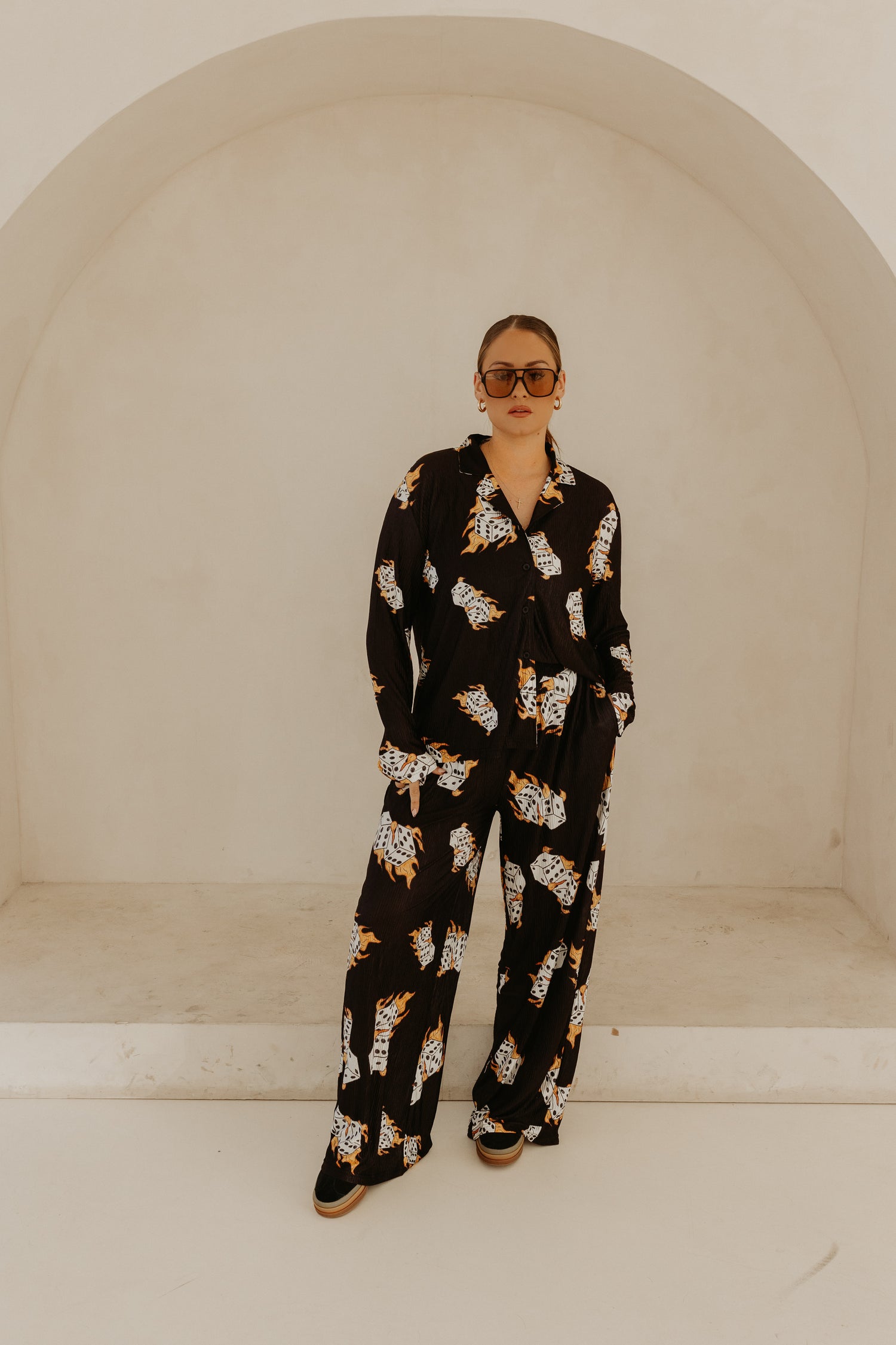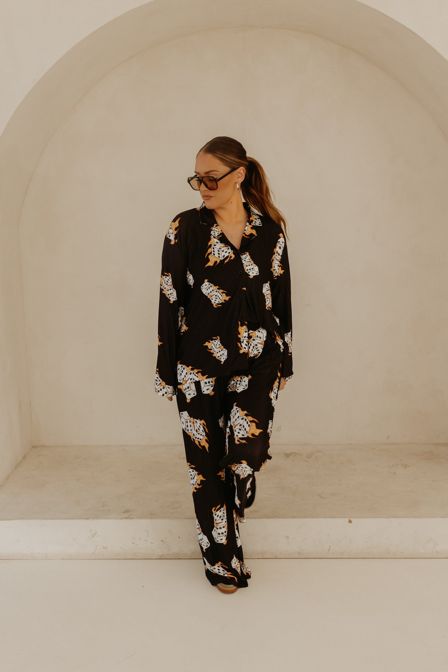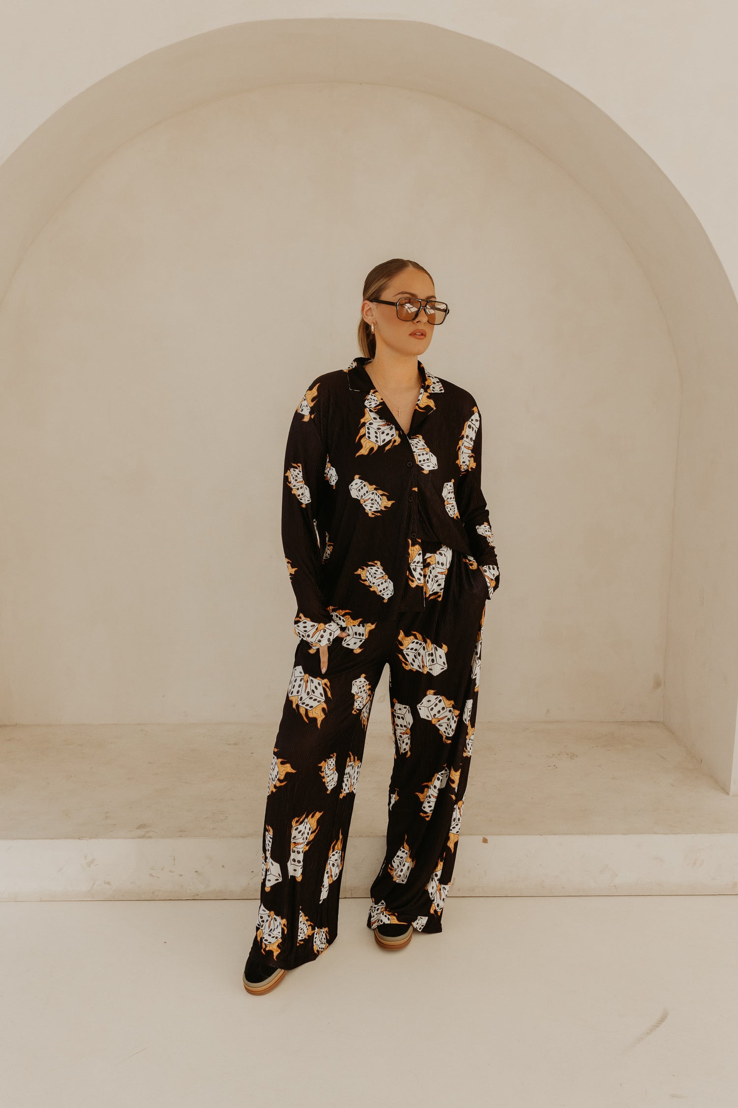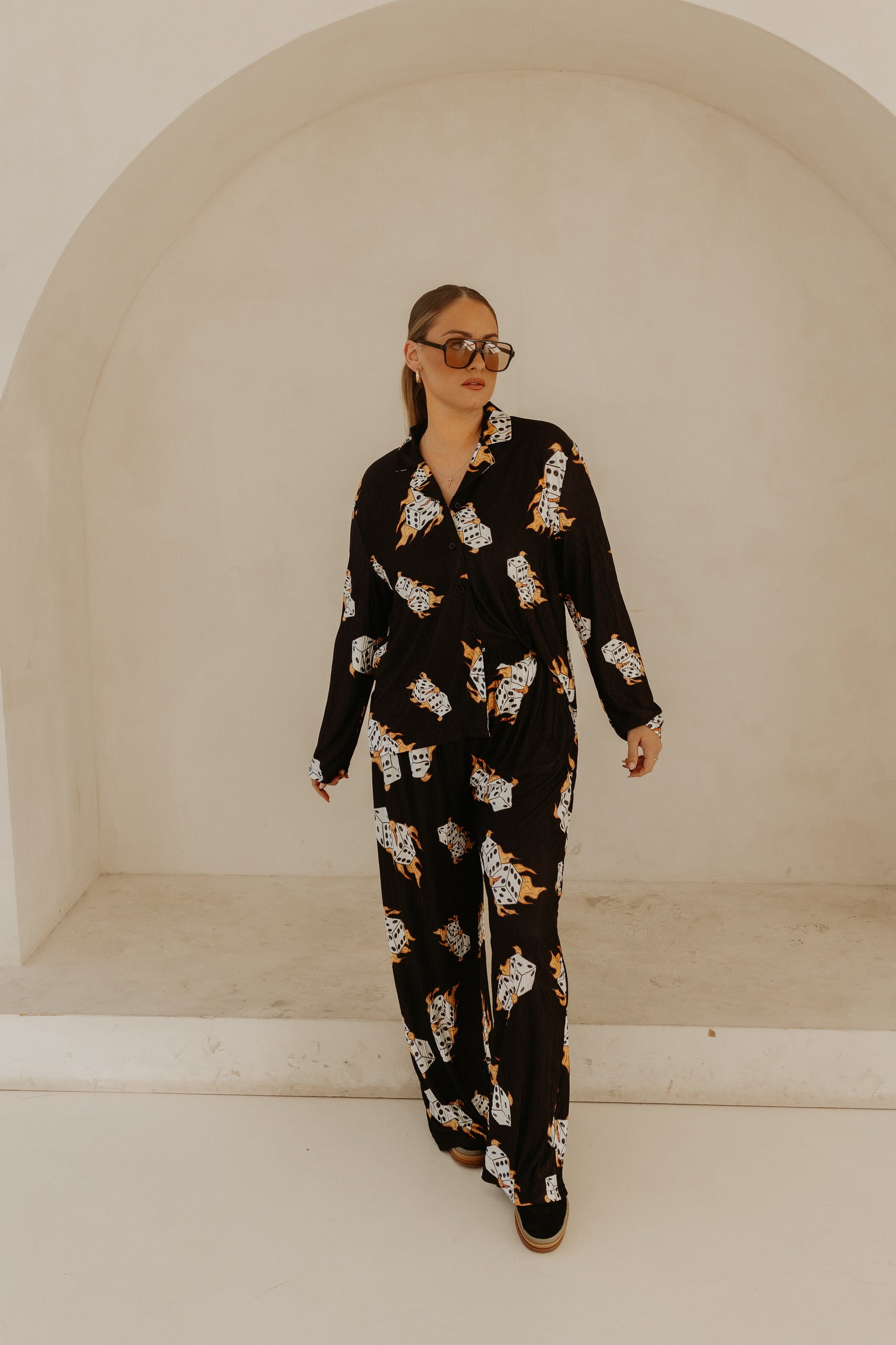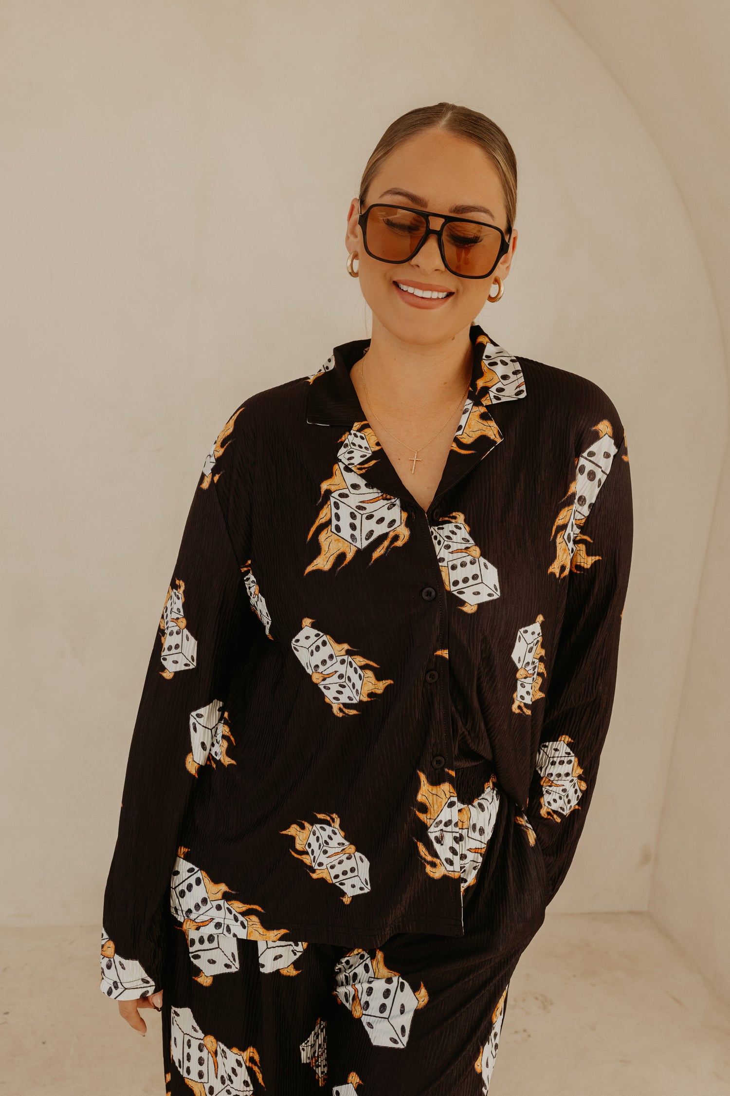 Very light weight and flowy poly fabric! Sizing is very roomy! Emily is pictured here in here true size L