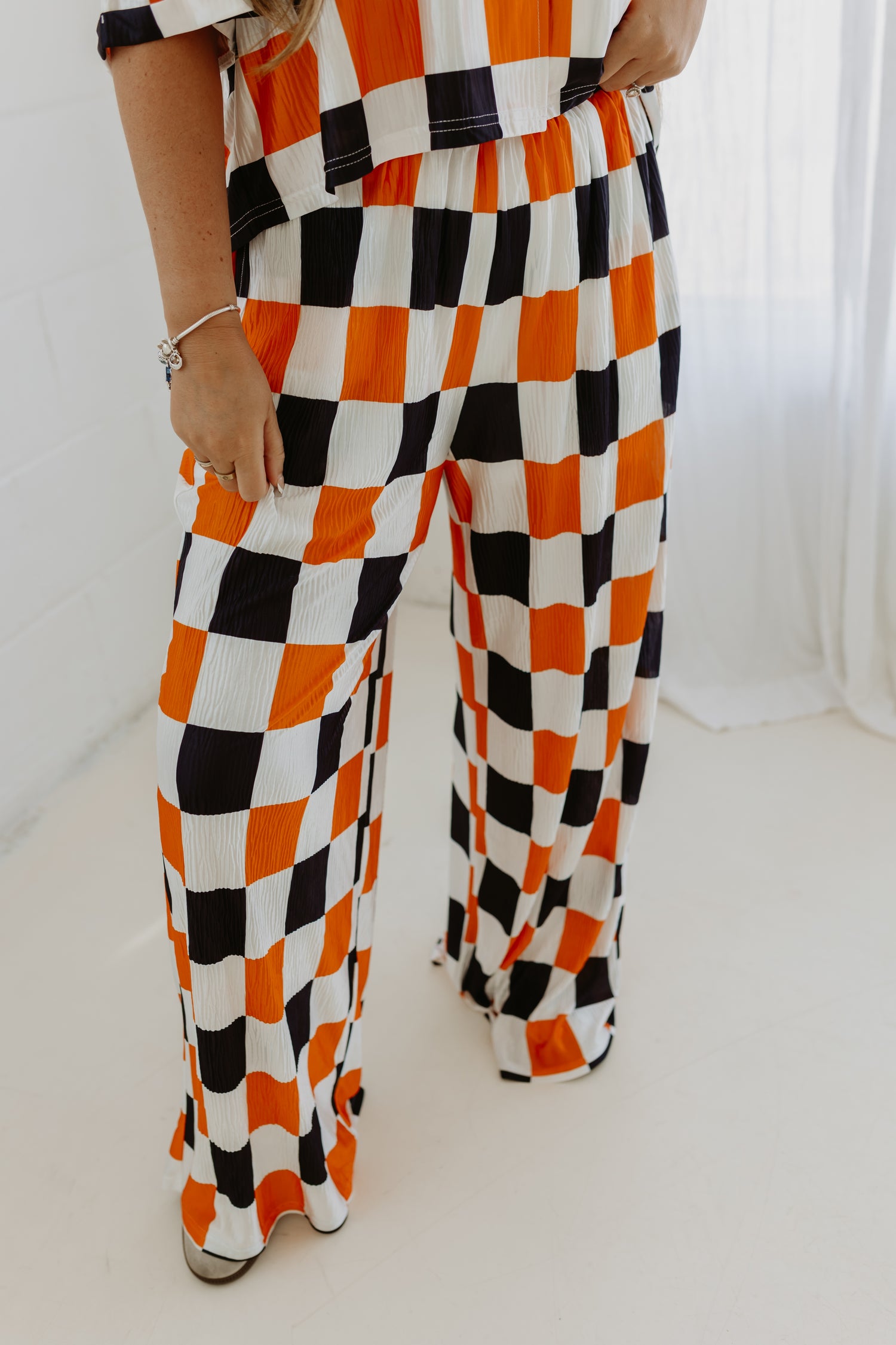 These checkmate pants are your NEWEST obsession! This trendy checkered print style is truly giving iconic. You can style them with your favorite graphic t-shirt, baby tee, or whatever tinkles your fancy because they are THAT good. These pants have a very wide leg relaxed fit with an elastic waistband and pockets. They are double lined with shorts, so they are not see through!