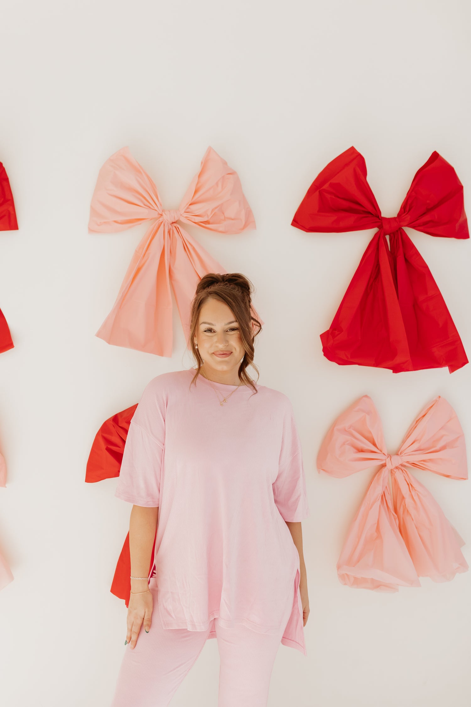 Amazing stretchy RIBBED fabric. You will want to live in this set. It is so freaking comfortable! Catlyn and Cori wear the size medium. Emily wears the Large, Maryssa Wears the small! We recommend your true size OR sizing down if you prefer a less oversized fit! These sets are heavy weight stretchy ribbed fabric!