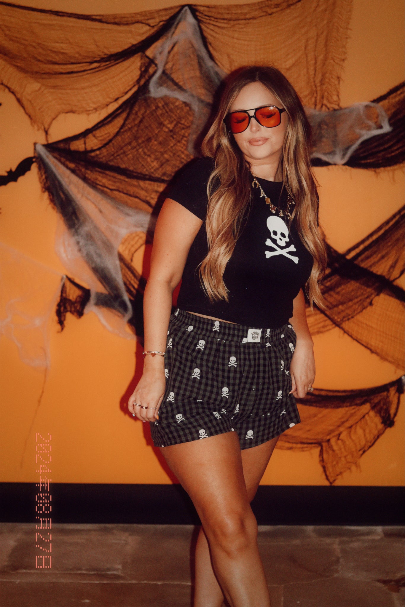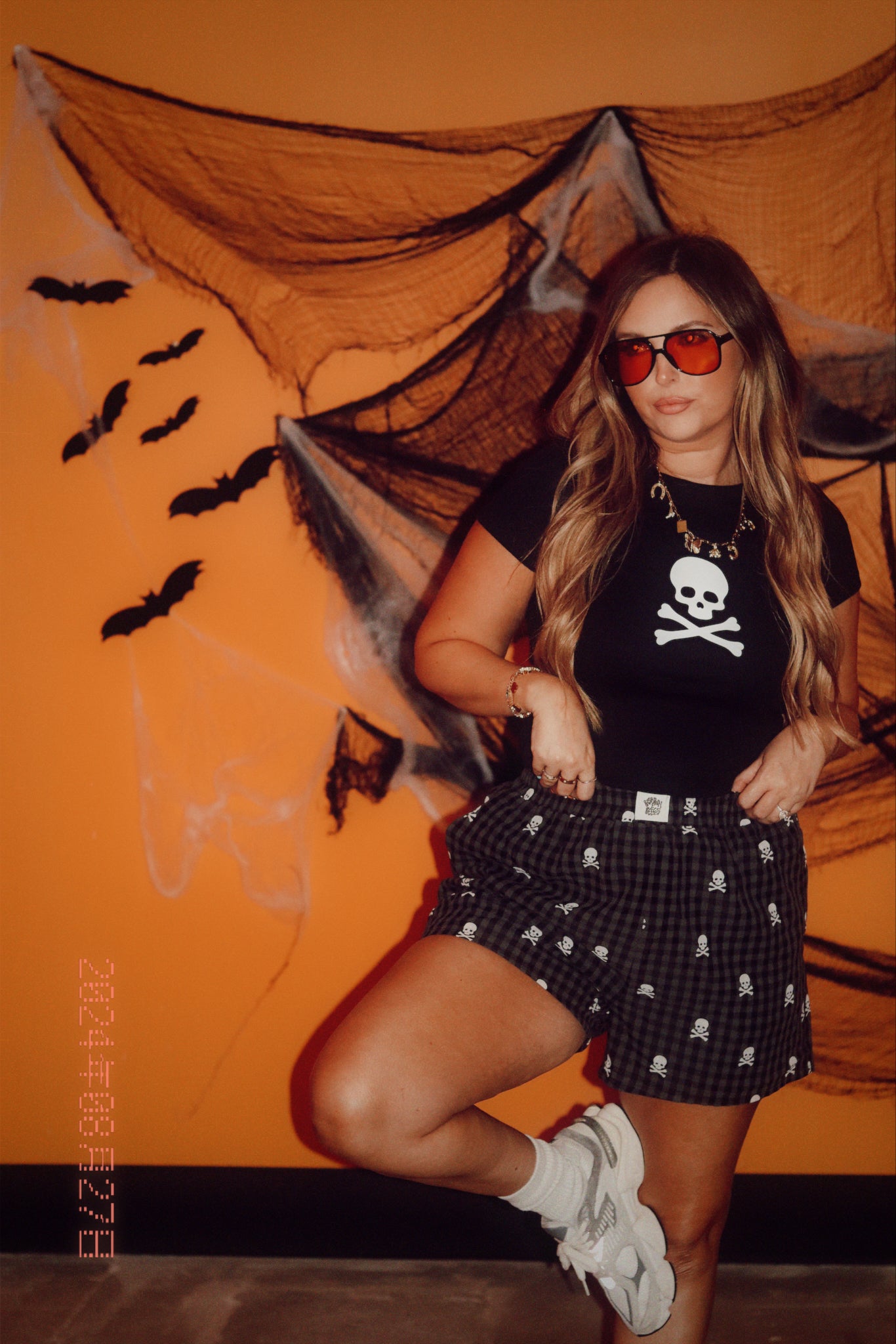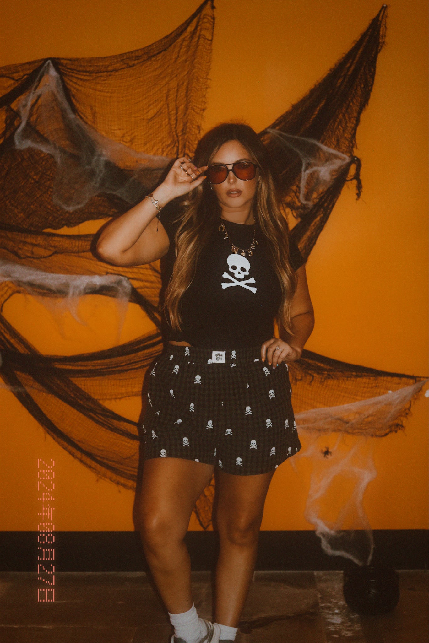 These boxer shortssssss omg is all we can say!!! so fun, so cute, and so different! We are OBSESSED!!!! These shorts are double lined which is amazing with pockets and custom printing!! Don’t miss out on these!! These fit true to size! Emily wears a Large, Sara wears the 2X, Cori, Catlyn, and Rys wear the M! Please see size chart for questions!!