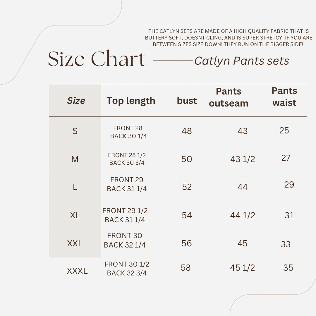Material is a heavy weight rayon and spandex blend! We love the way these sets lay on the body! These are the perfect sets to just through on and go! Dress them up or just wear them around the house! They are SO amazing!