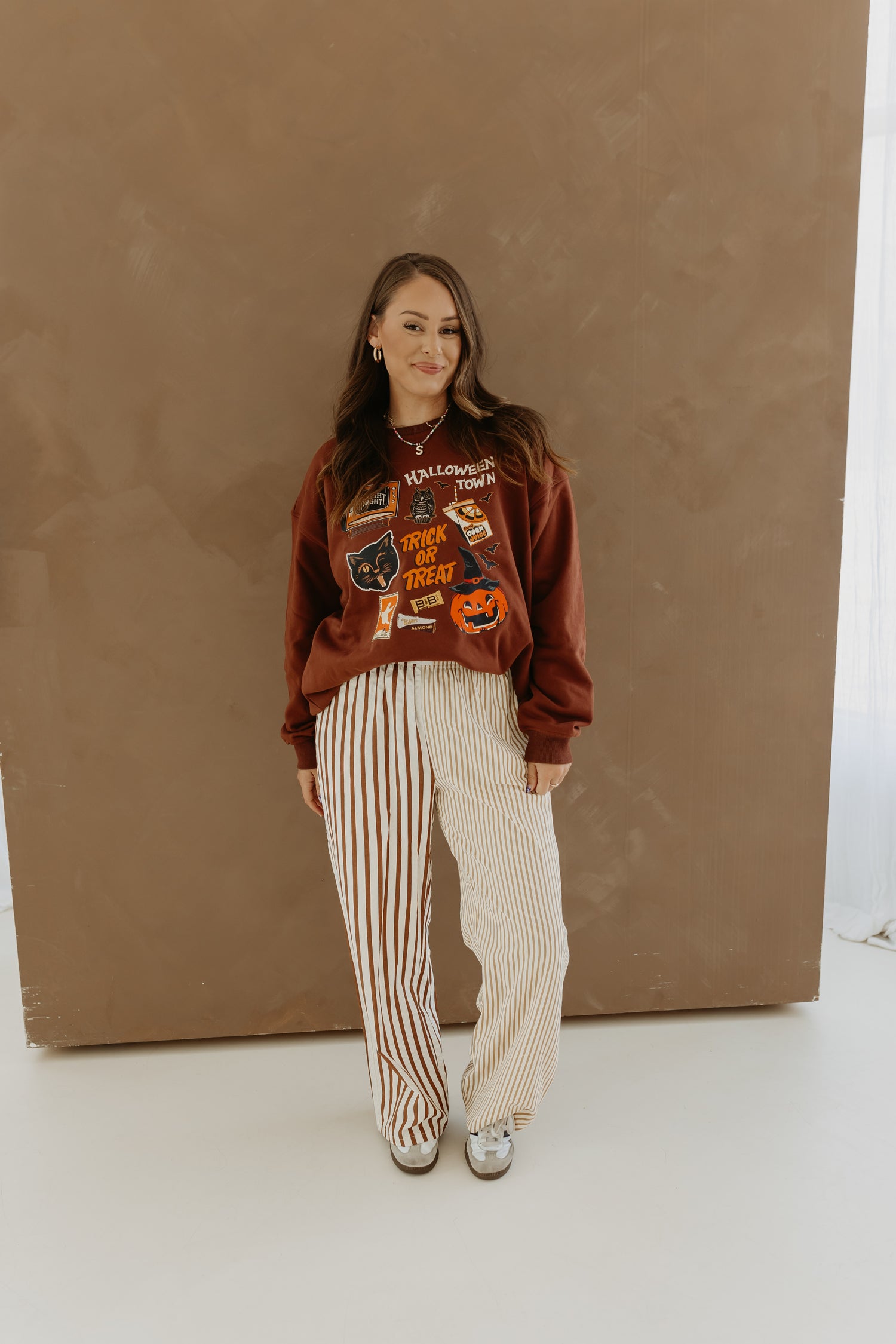 We wanted to bring all the memories back with this sweatshirt! We hope we did just like that! This Sweatshirt is a beautiful Dark brown color, it is already oversized, so no need to size up! Emily is 5’7 155lbs typically a L and is wearing the M/L! These sweatshirts are 100 percent cotton so keep that in mind!
