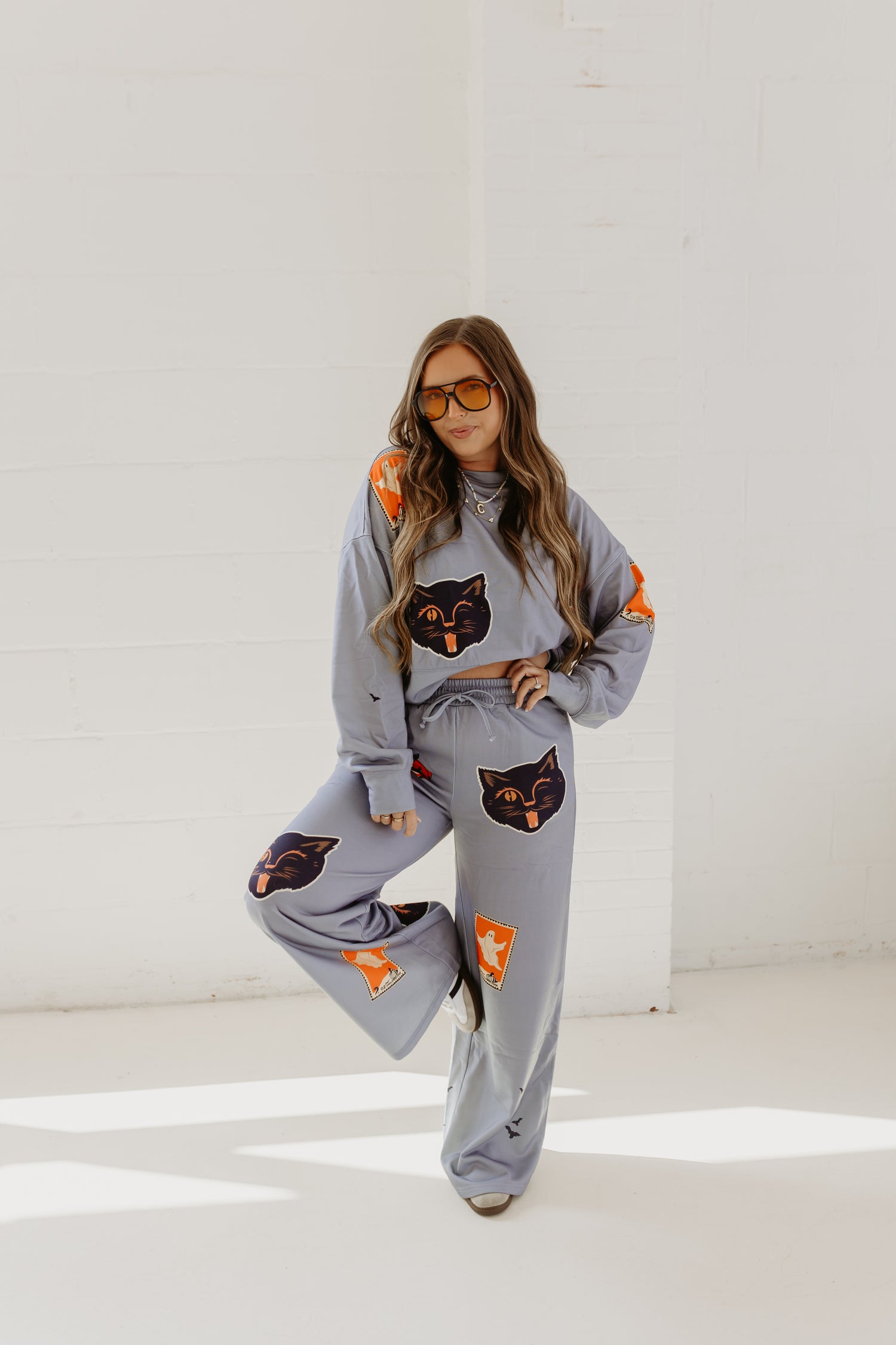 Super cute and unique wide leg pants! Pants have pockets and a elastic waist band with functional drawstring!