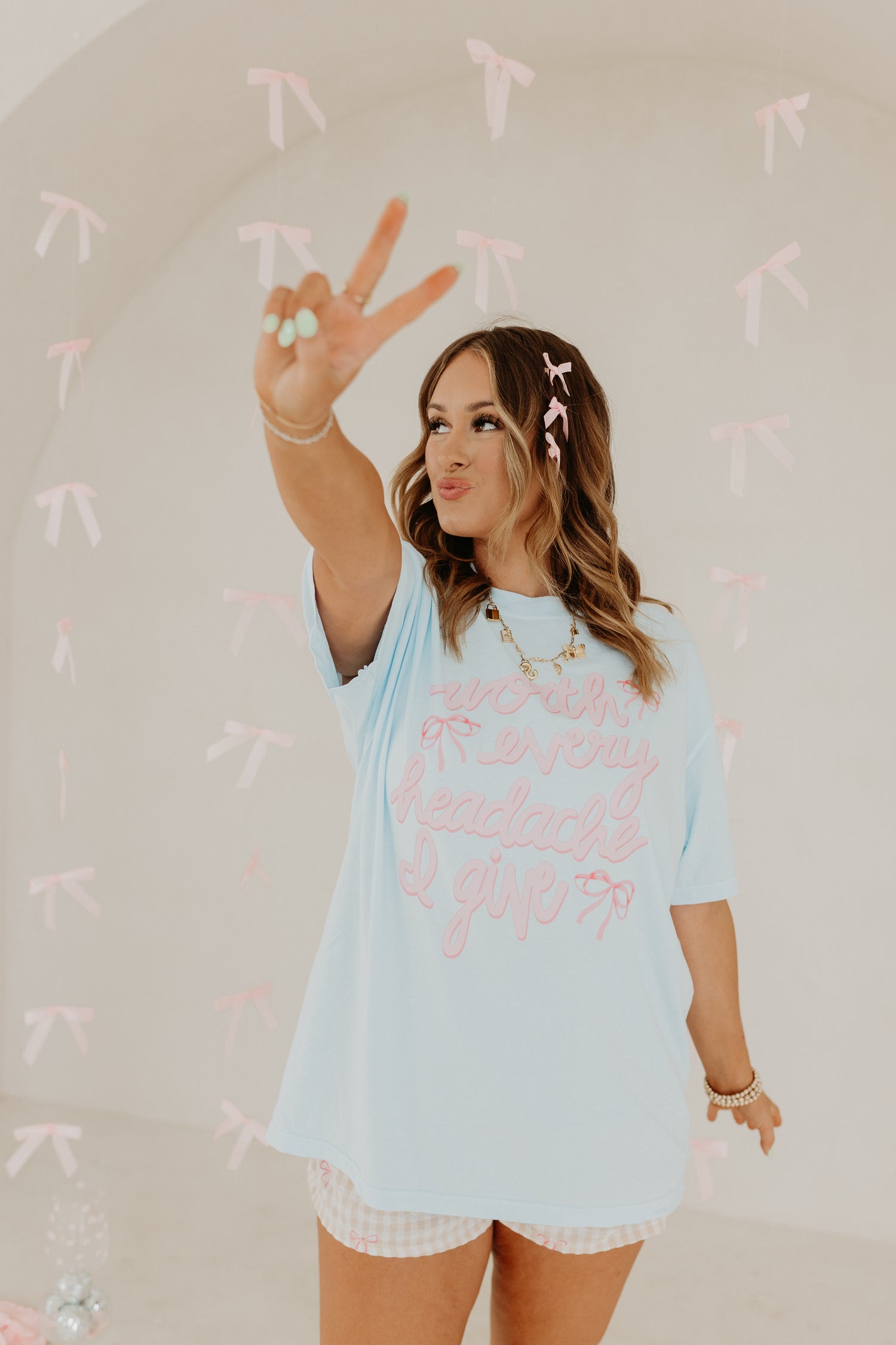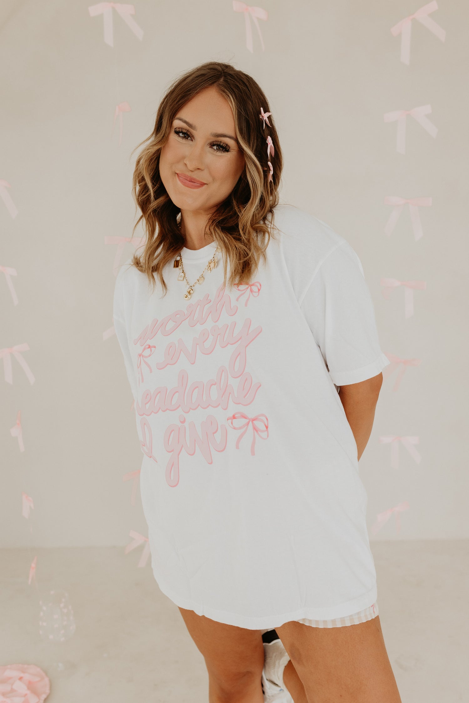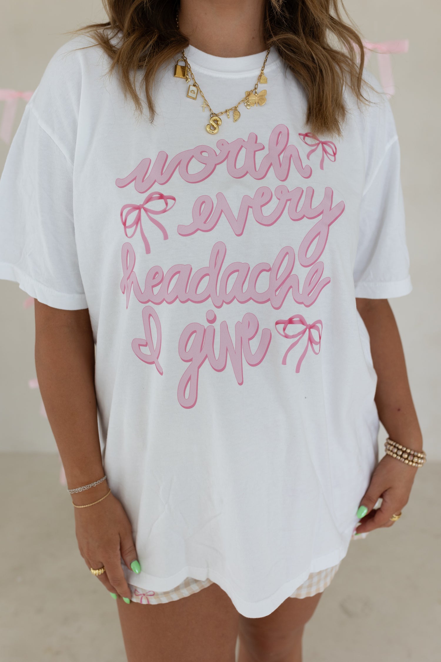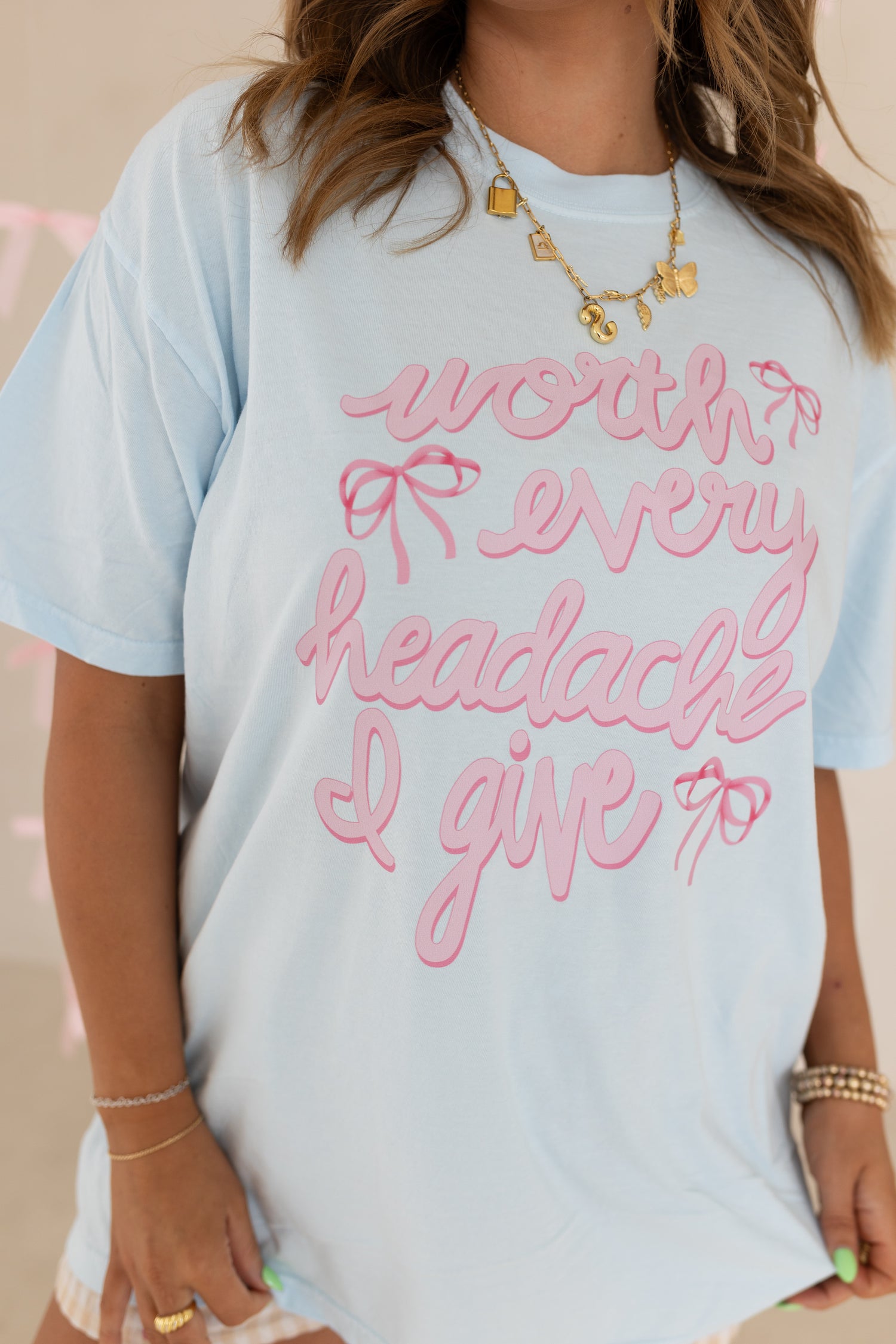 Unleash your playful side with our "Worth Every Headache I Give" t-shirt! Designed for the fun-loving, confident, and sassy girl, this tee perfectly captures your cheeky charm. Made from ultra-soft, breathable fabric, it promises ultimate comfort while making a bold statement.